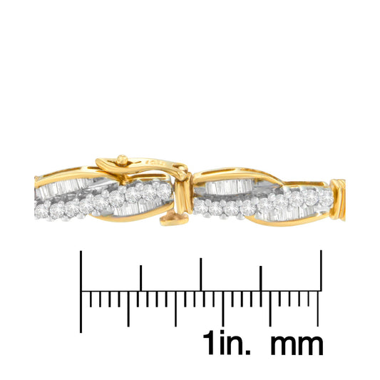 14K Yellow Gold Round and Baguette Cut Winding Love Diamond Bracelet (3.00 cttw, H-I Color, SI1-SI2 Clarity)