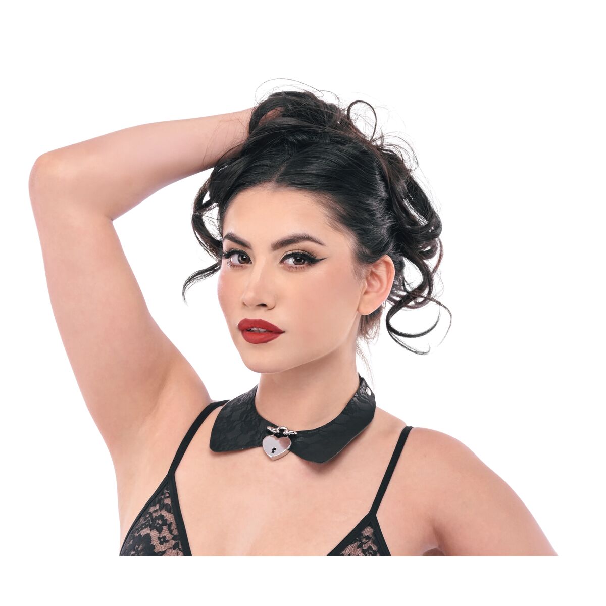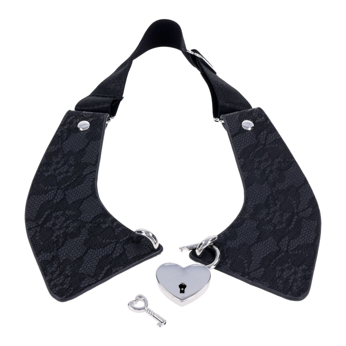 A symbol of devotion with a touch of edge. The Heartbound Lace Day Collar blends elegance and submission in a design that’s as stylish as it is sensual. Crafted from luxurious lace-etched faux leather, this collar features a polished silver heart lock at the front - securing the collar in place while adding a bold statement piece to your look. The adjustable bra-strap-style at the back ensures a comfortable, custom fit, making it perfect for all-day wear. Whether worn as a fashion accessory or a discreet symbol of your dynamic, the Heartbound Lace Day Collar invites you to embrace your desires with confidence.