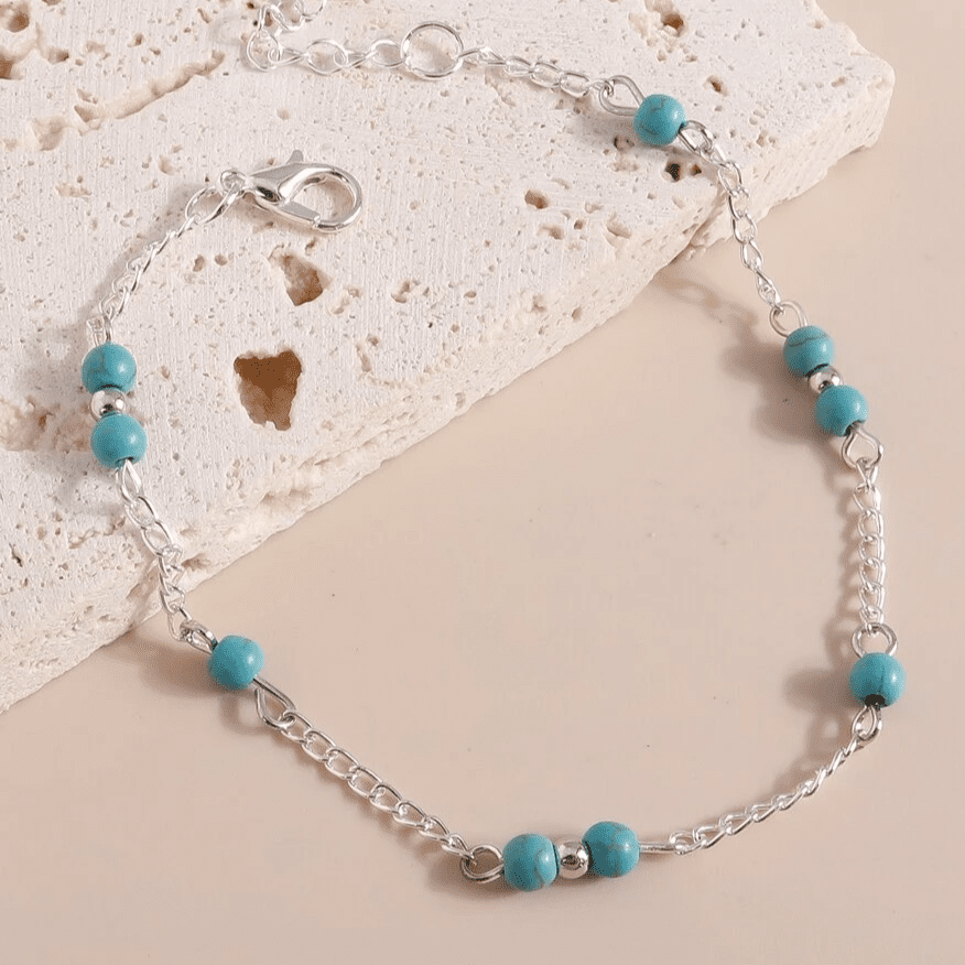 Simple & Sexy Silver & Turquoise Beaded Anklet